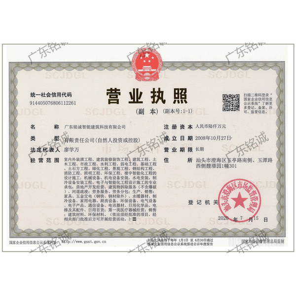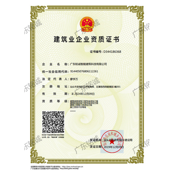 廣東銘誠智能建筑科技有限公司成立于2008年,公司注冊資金為6000萬元,集辦公裝修、酒店裝修、家庭裝修、軟裝裝飾、娛樂場所裝修為一體的裝飾公司,率先提出“創(chuàng)造現代人文空間,挑戰(zhàn)業(yè)界高峰”的雄壯口號,并以此為目標,完成了一大批具有影響力的大型公裝工程:其中包括廣州國際中醫(yī)藥展貿中心、奧飛澄海音樂廳、澄海區(qū)國家稅務局、澄海興信小額貸款、澄海潮商村鎮銀行、汕頭龍湖賓館、澄海豪庭大酒店、御園國際飲食城、澄海福晉軒酒家、享樂匯保健有限公司、假日商務酒店、尚景康園物業(yè)、星輝車模股份有限公司、奧飛動漫有限公司、香港國際玩具、汕頭萬基貿易有限公司、泰興源實業(yè)有限公司、汕頭皇冠玩具有限公司等;家裝工程包括南澳黃金海岸整幢的精裝房、中信華府、富春華庭、金信鳳凰名城、凱旋花園、中信金城、柏嘉半島、陽光海岸、金葉島等高等住宅。 ? 廣東銘誠智能建筑科技有限公司經過十余年的建筑裝飾裝修施工領域項目積淀,于2018年2月取得“建筑裝修裝飾工程專業(yè)承包二級”、“建筑機電安裝工程專業(yè)承包三級”、“建筑工程施工總承包三級”、“施工勞務不分等級”、“安全生產許可證”等專業(yè)資質,并于2021年8月建筑裝修資質正式升級為“建筑裝修裝飾工程專業(yè)承包一級”。這是對企業(yè)規(guī)模、工程業(yè)績、管理水平、誠信表現的肯定,是企業(yè)實力與能力的展現。 ? 公司每一項工程都始終堅持“精美設計、精心施工、確保合同承諾;勤奮開拓、追求突出、創(chuàng)造時代精品”的質量方針,力爭做一項工程,樹一座豐碑。 ? ?銘誠擁有一支由專業(yè)的營銷精英和客戶顧問組成的營銷隊伍,勤奮、敬業(yè)的每一位銘誠員工將本著“贏在別人休息時”的專業(yè)精神,為客戶提供全程營銷及售后服務,確保客戶的合法利益,提供體貼周到的服務,做到讓顧客滿意。 ? 銘誠擁有一批資老牌室內環(huán)境設計師,以“現代人文空間”為設計理念,為客戶提供人性化、差異化、智能化的室內環(huán)境設計服務,準確的將人性化特點與室內環(huán)境相融合,達到了“現代人文空間”的和諧統一。 ? ? ? ?自主創(chuàng)新、視社會責任為己任的精神使我們在發(fā)展的道路上屢獲殊榮:不斷提升的銘誠品牌知名度和美譽度,靠的是優(yōu)質的產品,靠的是不斷提升的營業(yè)績,靠的是國內的核心技術和誠信的服務。相信通過銘誠人的努力,銘誠將會不斷以新的姿態(tài)為提升廣大消費者的生活質量做好服務,為中國裝飾行業(yè)設計創(chuàng)新做出突出貢獻。 ? ? “忘掉競爭、共